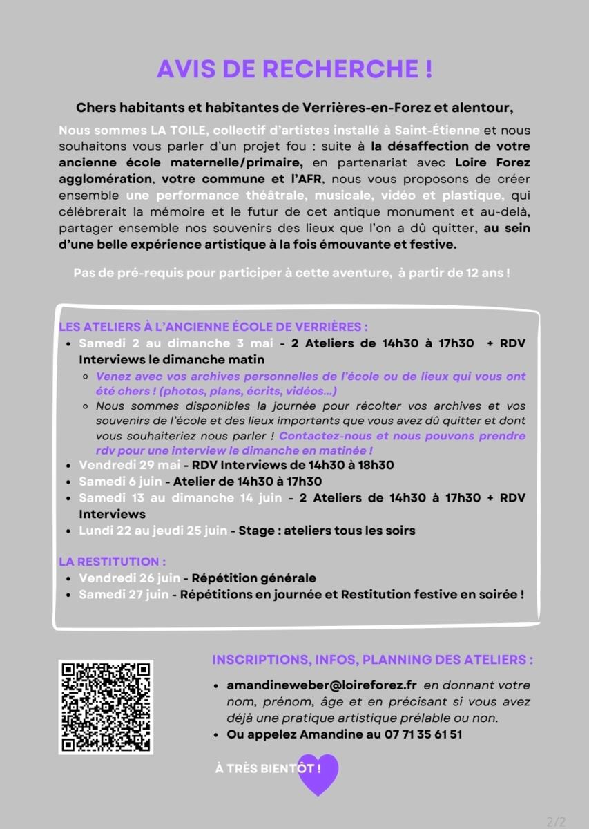 Une action artistique prévue sur l’ancienne école ce week-end : samedi 2 mai et dimanche 3 mai de 14h30 à 17h30 + appels à témoignage pour le dimanche matin.