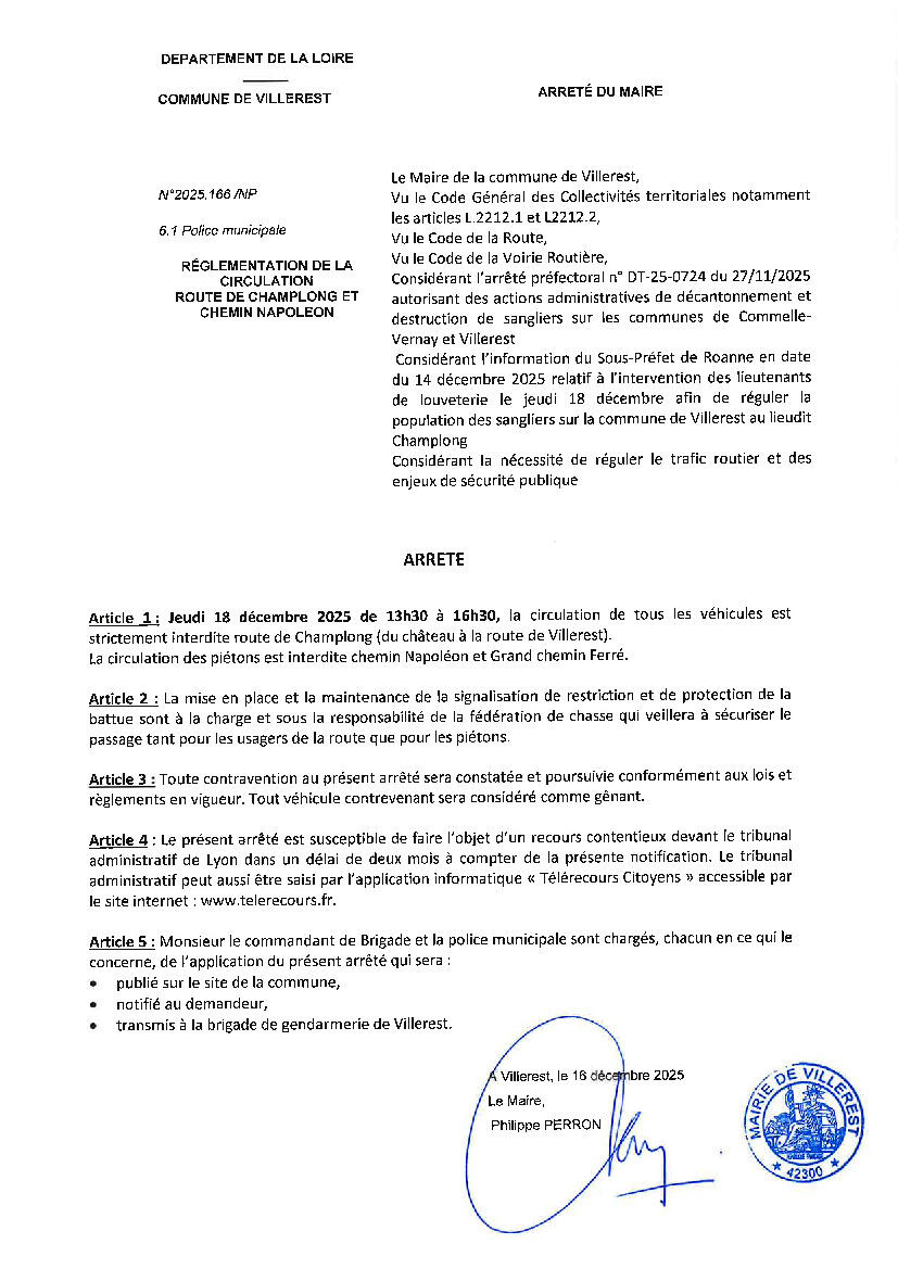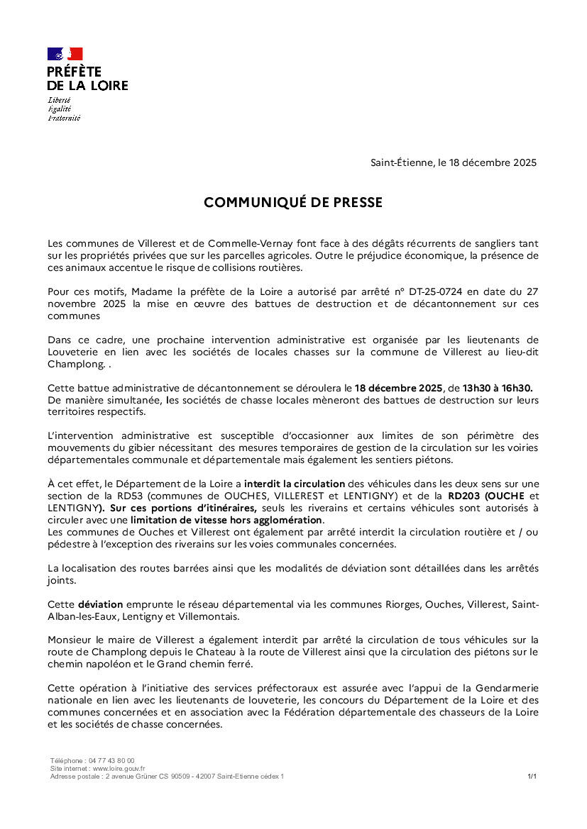 le 18 décembre 2025, de 13h30 à 16h30 se déroulera une battue administrative aux sangliers.