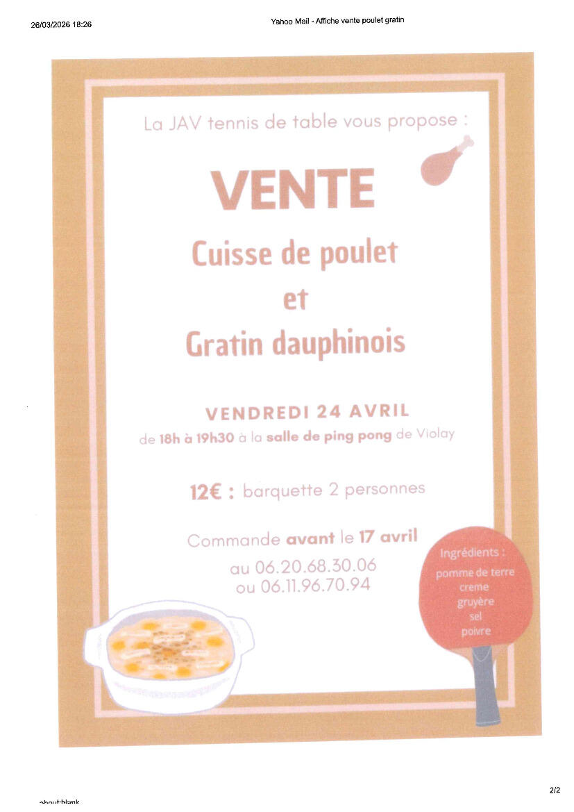 JAV Tennis de table Vente du 24 avril 2026