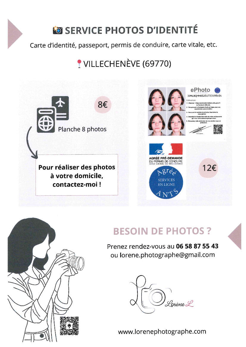 Si vous avez besoin de photos d'identité, un nouveau service a été mis en place à VILLECHENÈVE (69770).