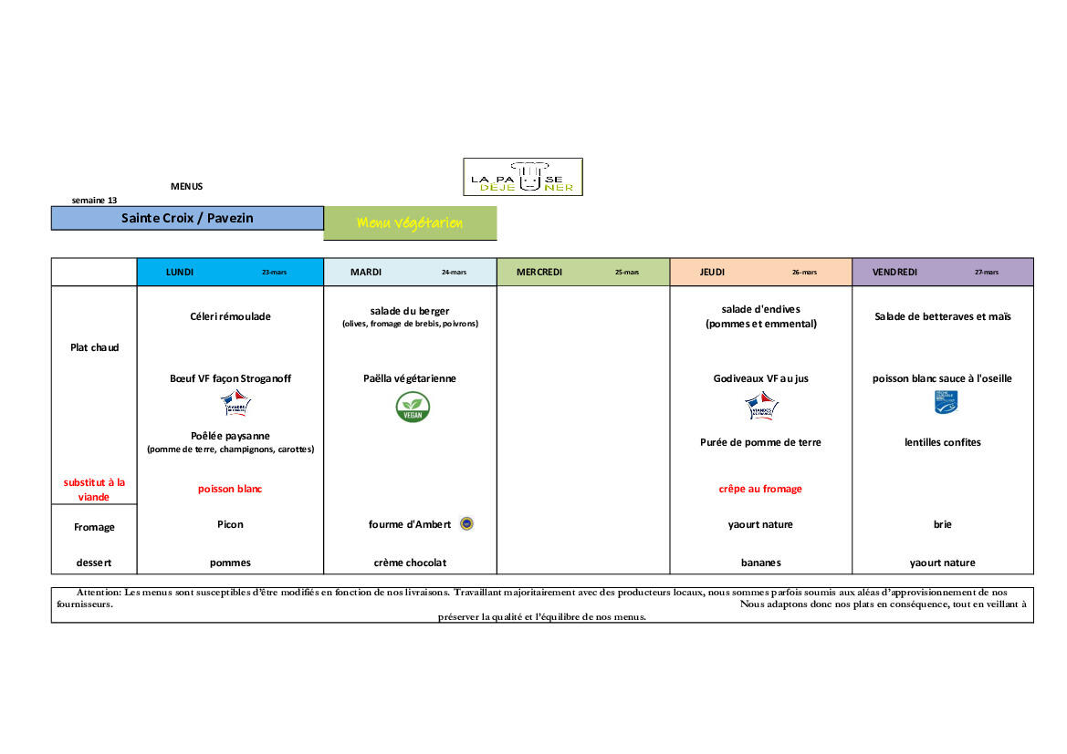 Menus Cantine Semaine 13