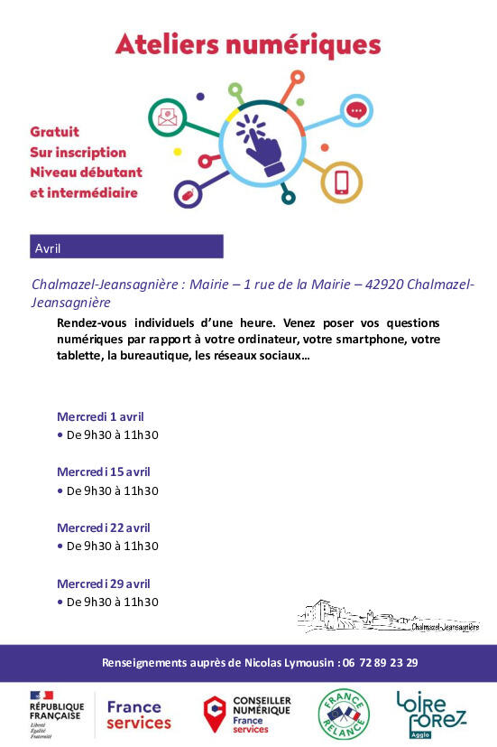 France Services - Ateliers numériques avril 2026 4/9/26 Source : Mairie de Chalmazel-Jeansagnière Source : Mairie de Chalmazel-Jeansagnière