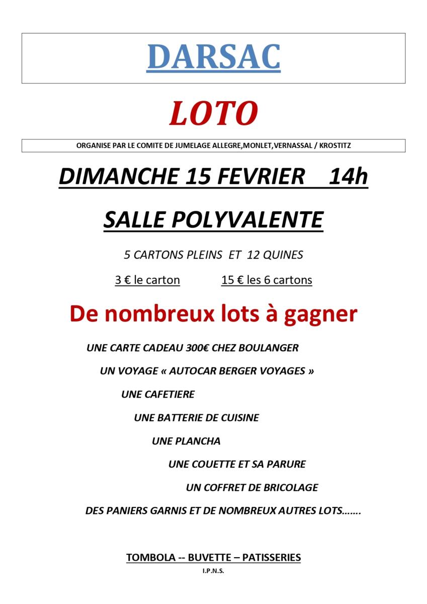 LOTO à Darsac – Dimanche 15 février à 14h