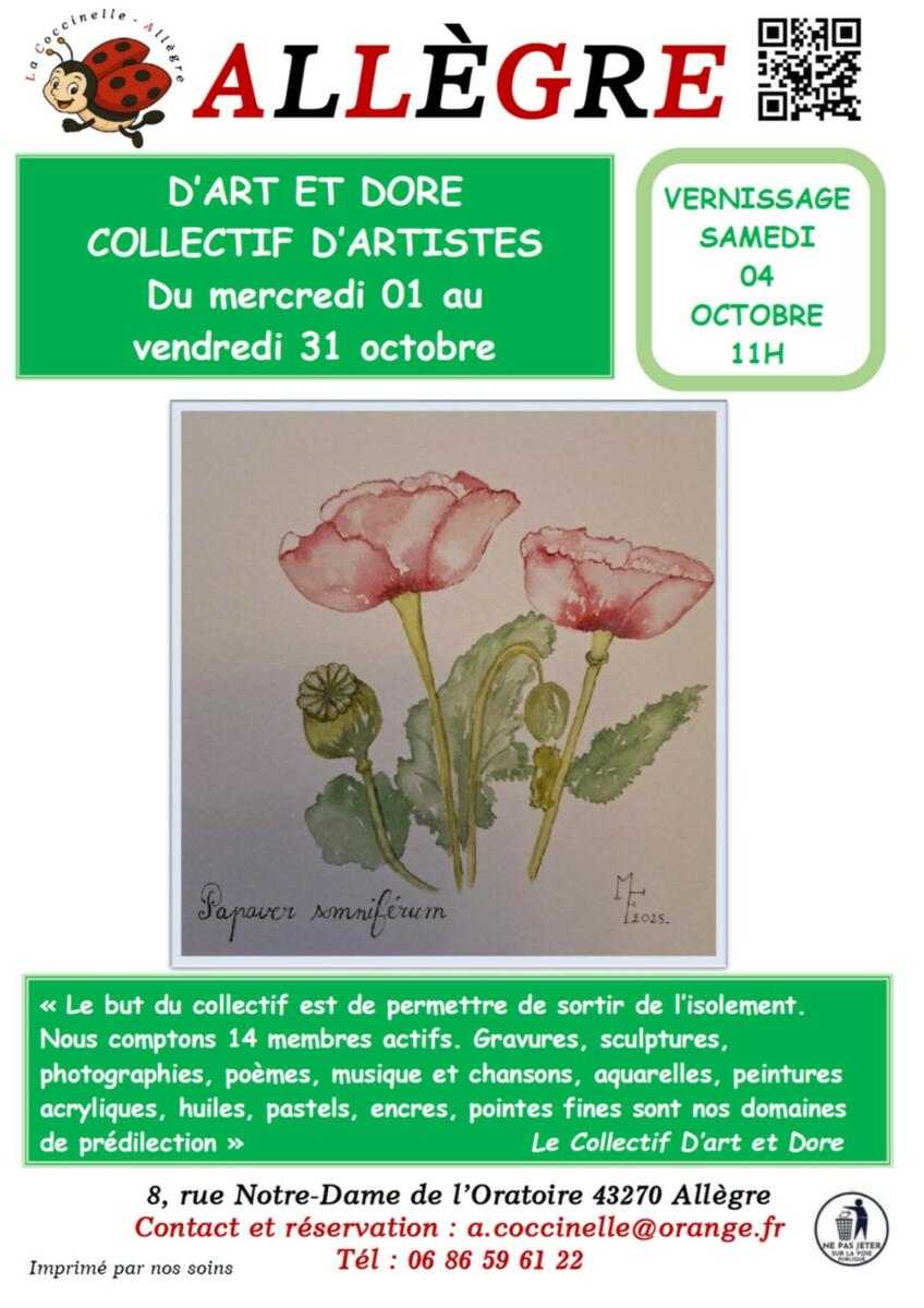 • Exposition "D'art et Dore" du 1er au 31 octobre. Vernissage samedi 4 octobre à 11h00.