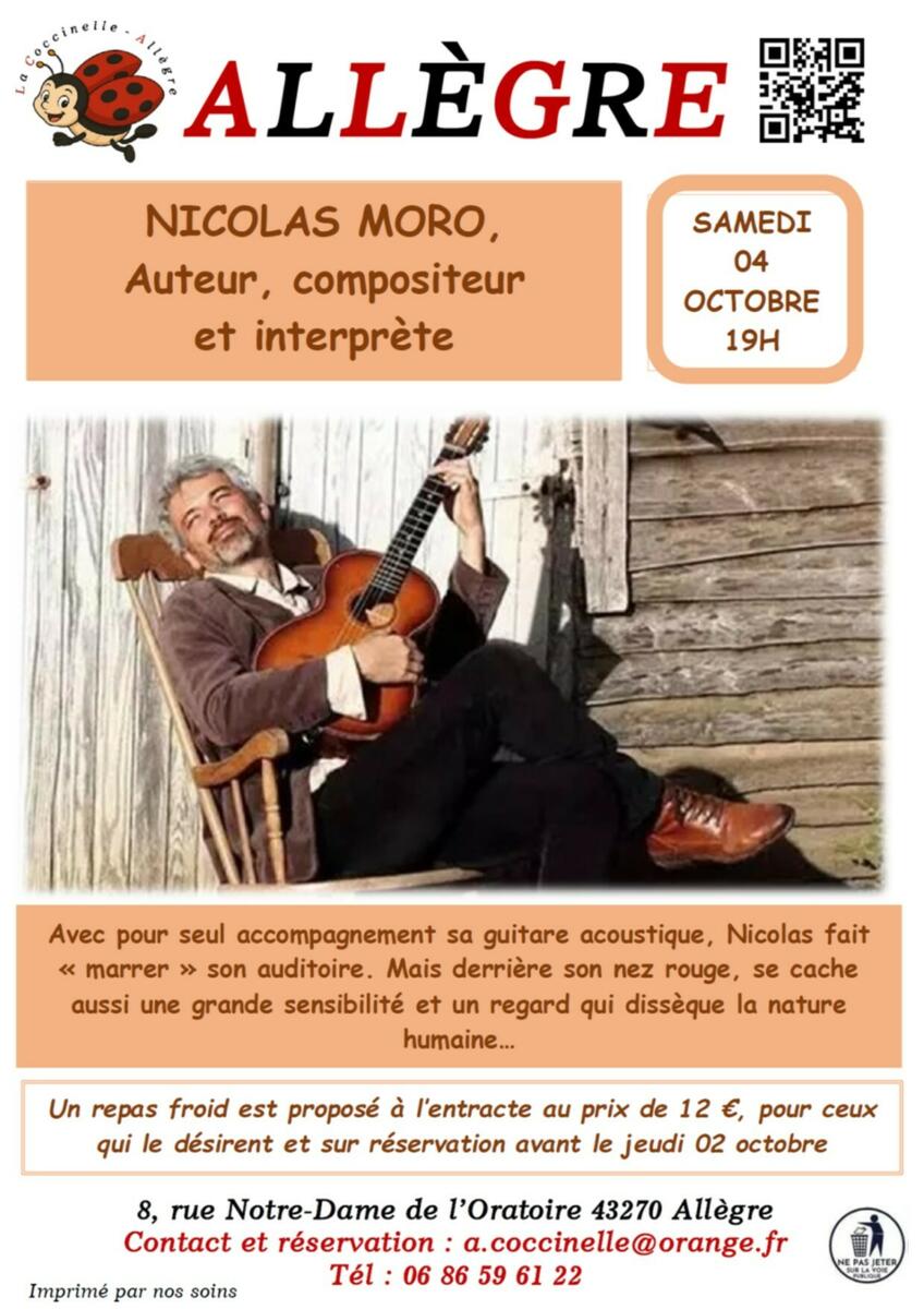 • Concert Nicolas Moro samedi 4 octobre à 19h00.