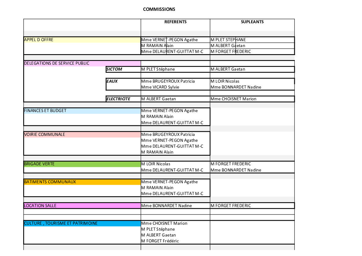 à cette occasion le conseil a cloturé le positionnement de ces élus sur les différentes commissions :
