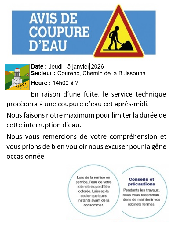 Coupure d'eau Courenc