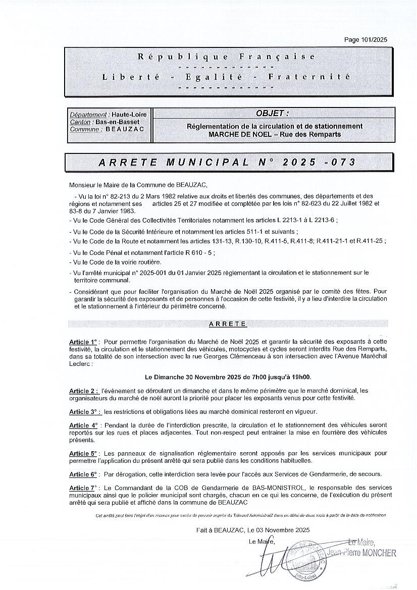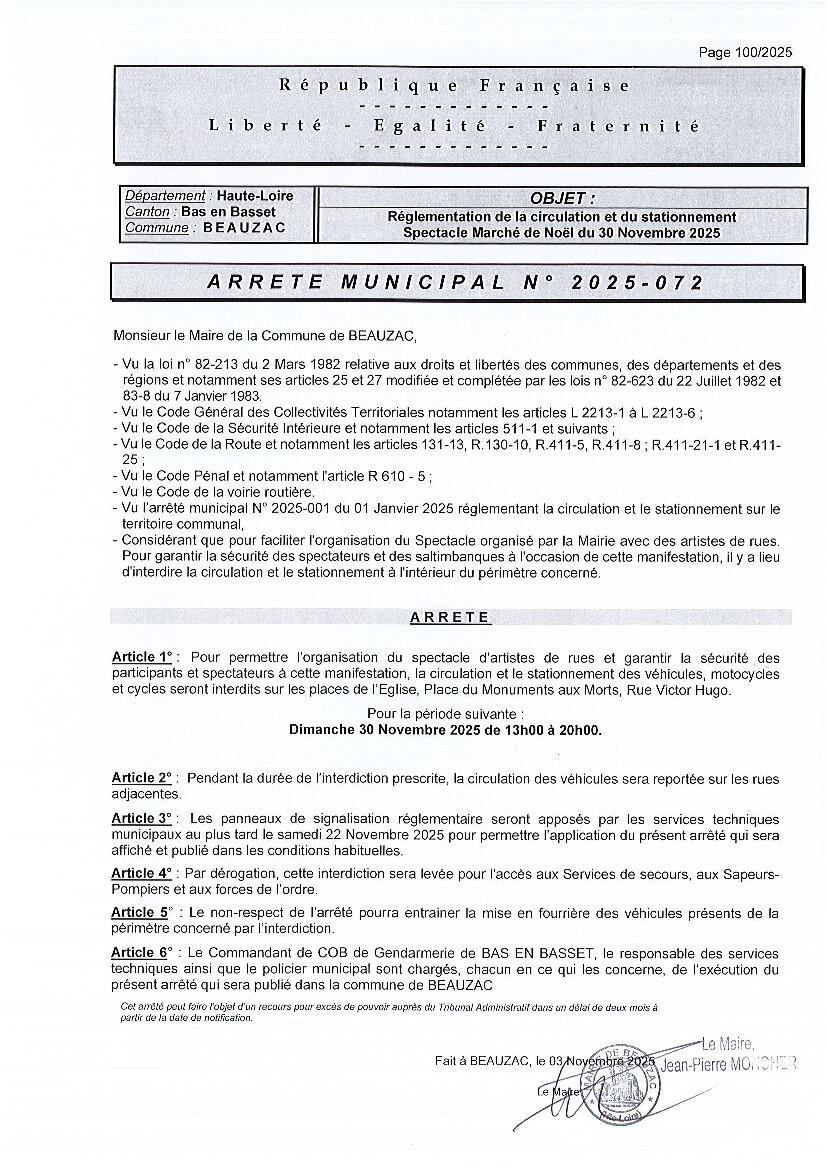 đ CIRCULATION & STATIONNEMENT DANS LE BOURG - 30 NOVEMBRE