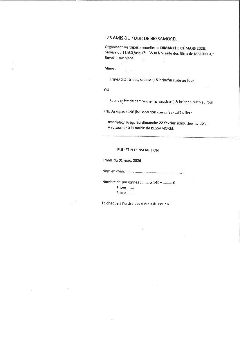 Tripes Les Amis du Four dimanche 1er mars