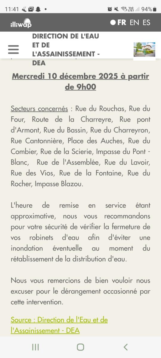 Coupure d'eau - mercredi 10 décembre à partir de 9H