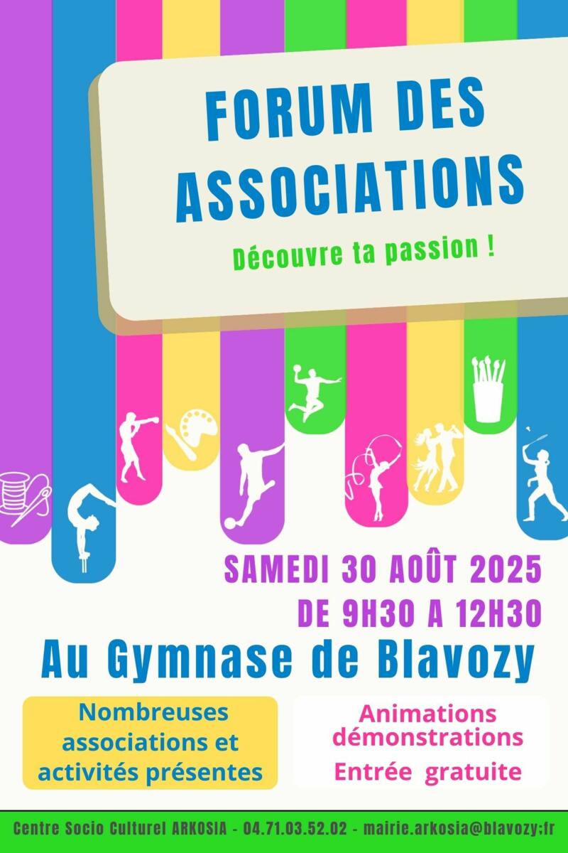 Pour bien préparer la rentrée des loisirs, rendez vous samedi 30 août entre 9h30 et 12h30 au gymnase de Blavozy. Présence de nombreuses associations pour vous renseigner.