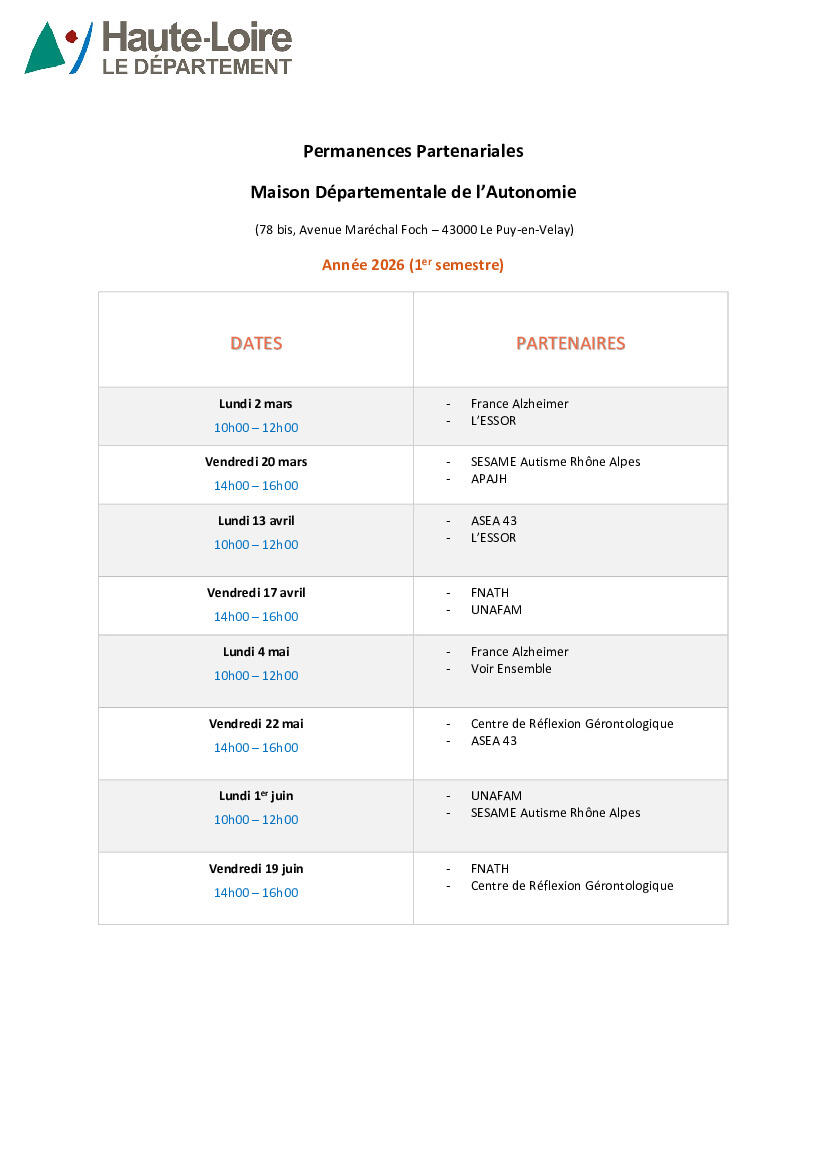 📍 Lieu : Maison Départementale de l’Autonomie (78 bis, Avenue Maréchal Foch – 43000 Le Puy-en-Velay)