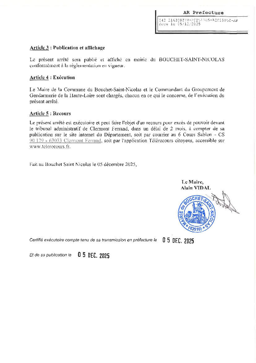 Suite aux travaux de réfection des trottoirs du lotissement Lachamp, veuillez trouver ci joint un arrêté de circulation