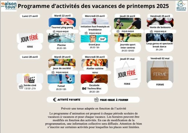 Voici le programme des vacances pour le secteur ados à la Maison Pour Tous de Brives-Charensac !