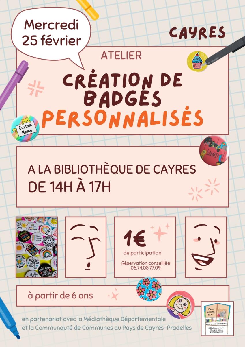 CREATION DE BADGES - BIBLIOTHEQUE CAYRES