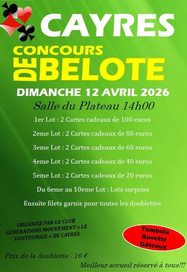 pour le concours de belote du Club des Aînés "Génération mouvement Le Fontourige" de Cayres.