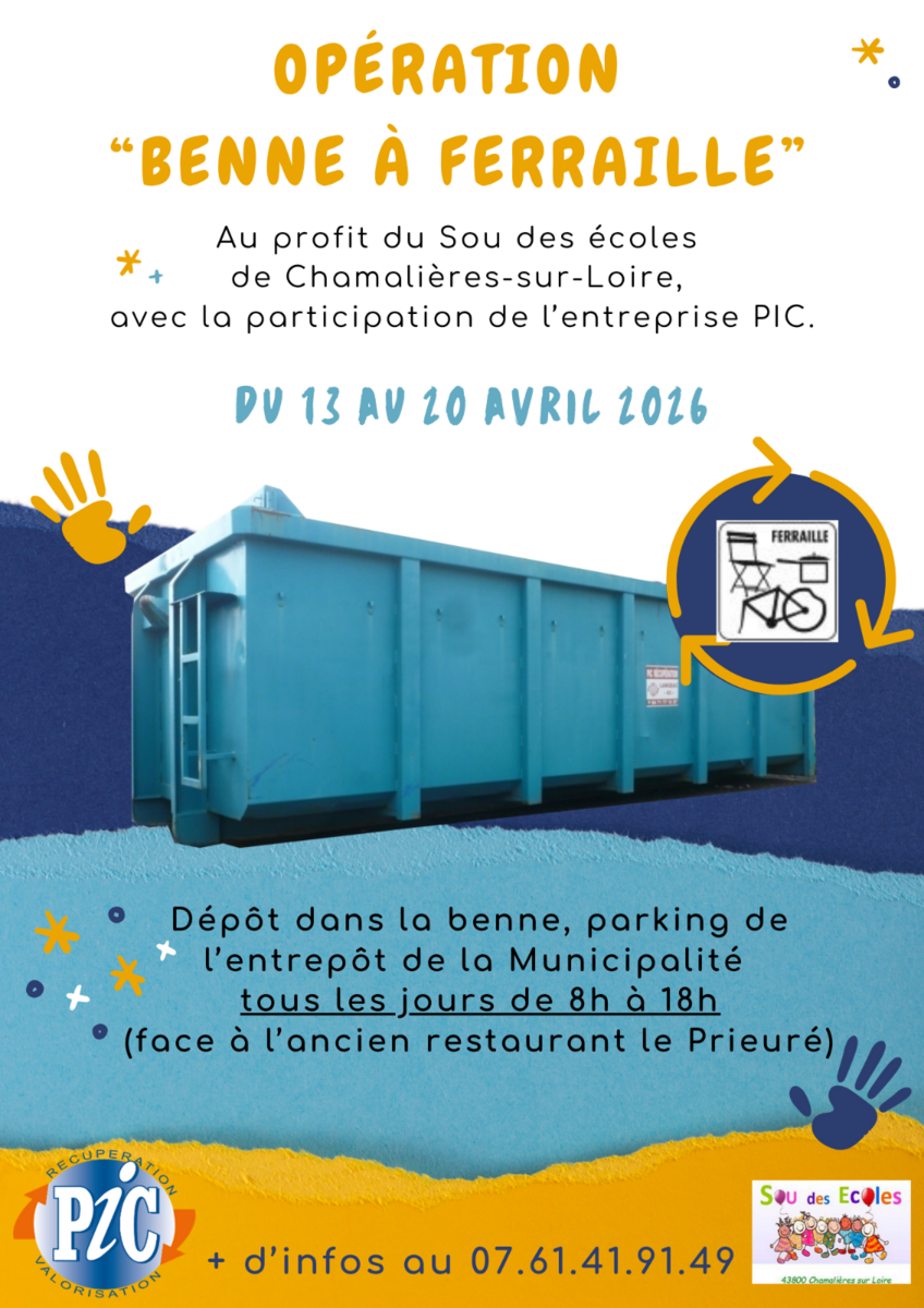 LA BENNE À FERRAILLES EST EN PLACE JUSQU'AU 20 AVRIL !