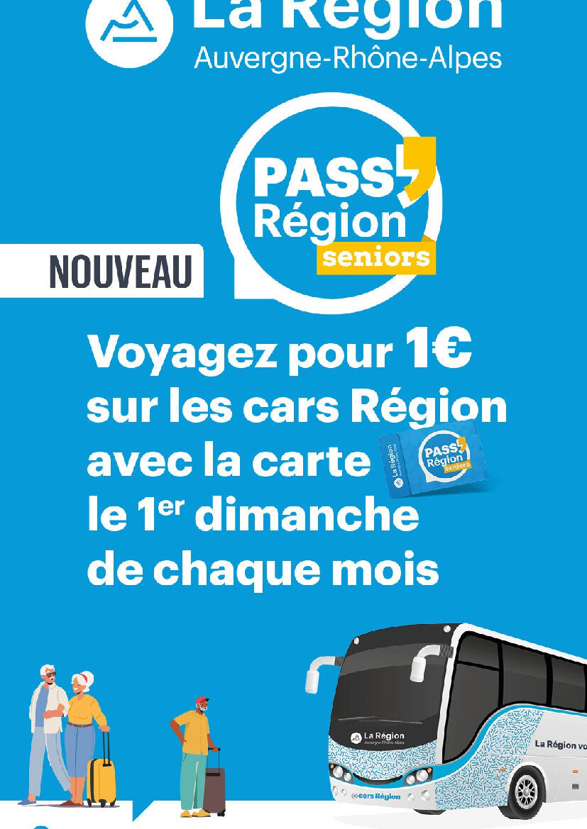 À partir du 1er février, tous les cars Région (hors lignes touristiques) accepteront la carte Pass Senior, disponible gratuitement auprès de la Région Auvergne-Rhône-Alpes. Destinée aux personnes de plus de 65 ans, cette carte propose des réductions chez de nombreux partenaires et permettra également de voyager à bord des cars Région pour 1 euro le trajet, chaque premier dimanche du mois. Une opportunité de se déplacer à moindre coût, quelle que soit la distance parcourue.