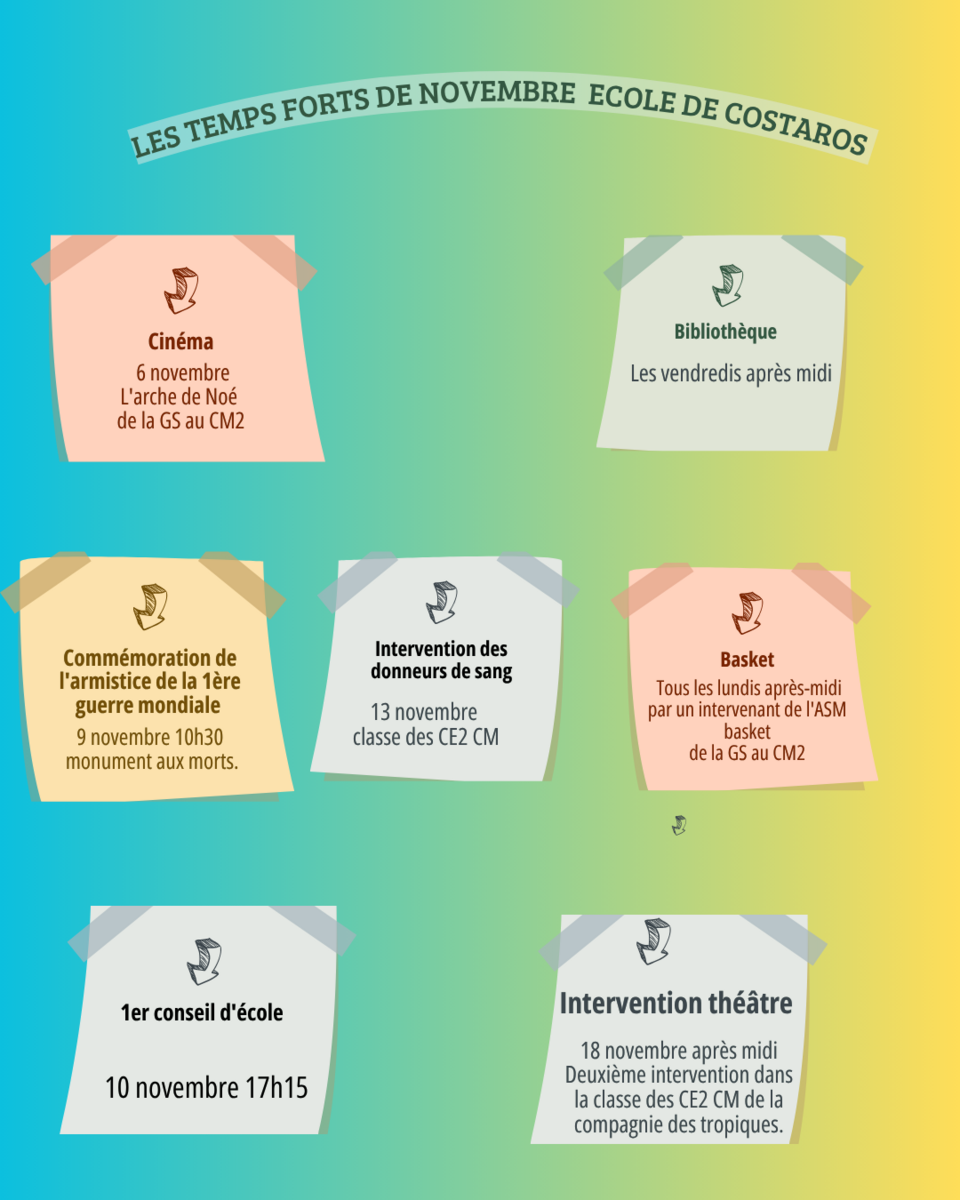 Ecole de Costaros: les temps forts du mois de Novembre