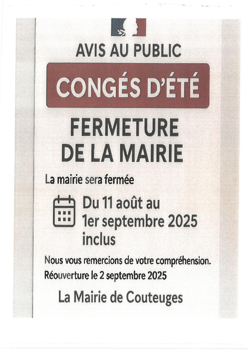 Fermeture mairie- Eté 2025