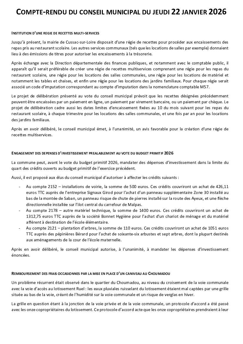 🗳 Compte-rendu du conseil municipal du jeudi 22 janvier