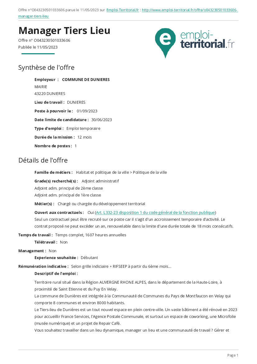 News of Mairie de Dunières