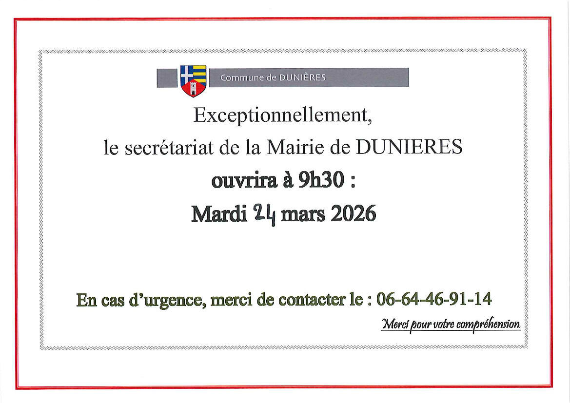 Your town hall / News / Ouverture Mairie à 9h30 le 24/03/2026