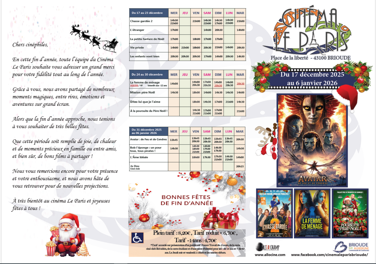 Cinéma Le Paris du 17/12/25 au 6/01/26
