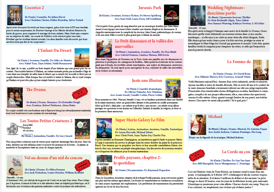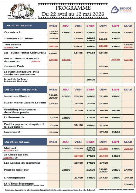 ** Le cinéma Le Paris s’associe à la ville de Brioude pour le week-end Paléo (programme complet en pièce jointe).