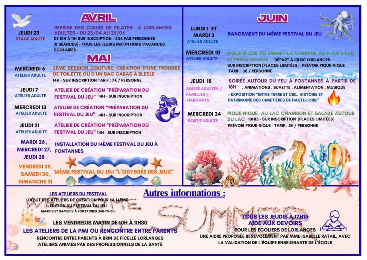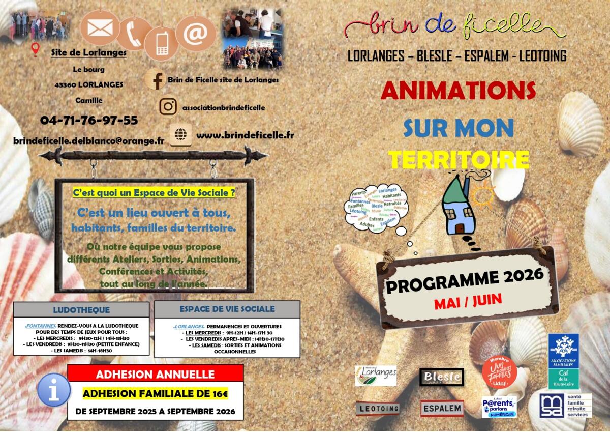 Le nouveau programme pour le mois de mai et juin de l'EVS (ESPACE DE VIE SOCIALE), il y en a pour tous les goûts!