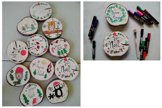 🎹 Samedi 6 dĂ©cembre, la bibliothĂ©caire Sophie a animĂ© un atelier crĂ©atif sur le thĂšme de noĂ«l. L’idĂ©e etait d’avoir un objet dĂ©coratif naturel qui capture l’esprit chaleureux des fĂȘtes de fin d’annĂ©e. Un rondin de bois devient un objet singulier qui peut s’intĂ©grer sur les tables. AssociĂ© Ă  quelques branches de sapin, des bougies ou quelques vĂ©gĂ©taux, il crĂ©e une ambiance chic et rustique. Les jeunes ont fait appel Ă  leurs souvenirs, leurs imaginations pour customiser ces supports. Ils l’ont personnalisĂ© avec des messages afin de pouvoir les offrir ou bien se faire plaisir. Nous avons conservĂ© les cernes et les nƓuds du bois pour avoir un aspect authentique.