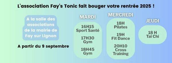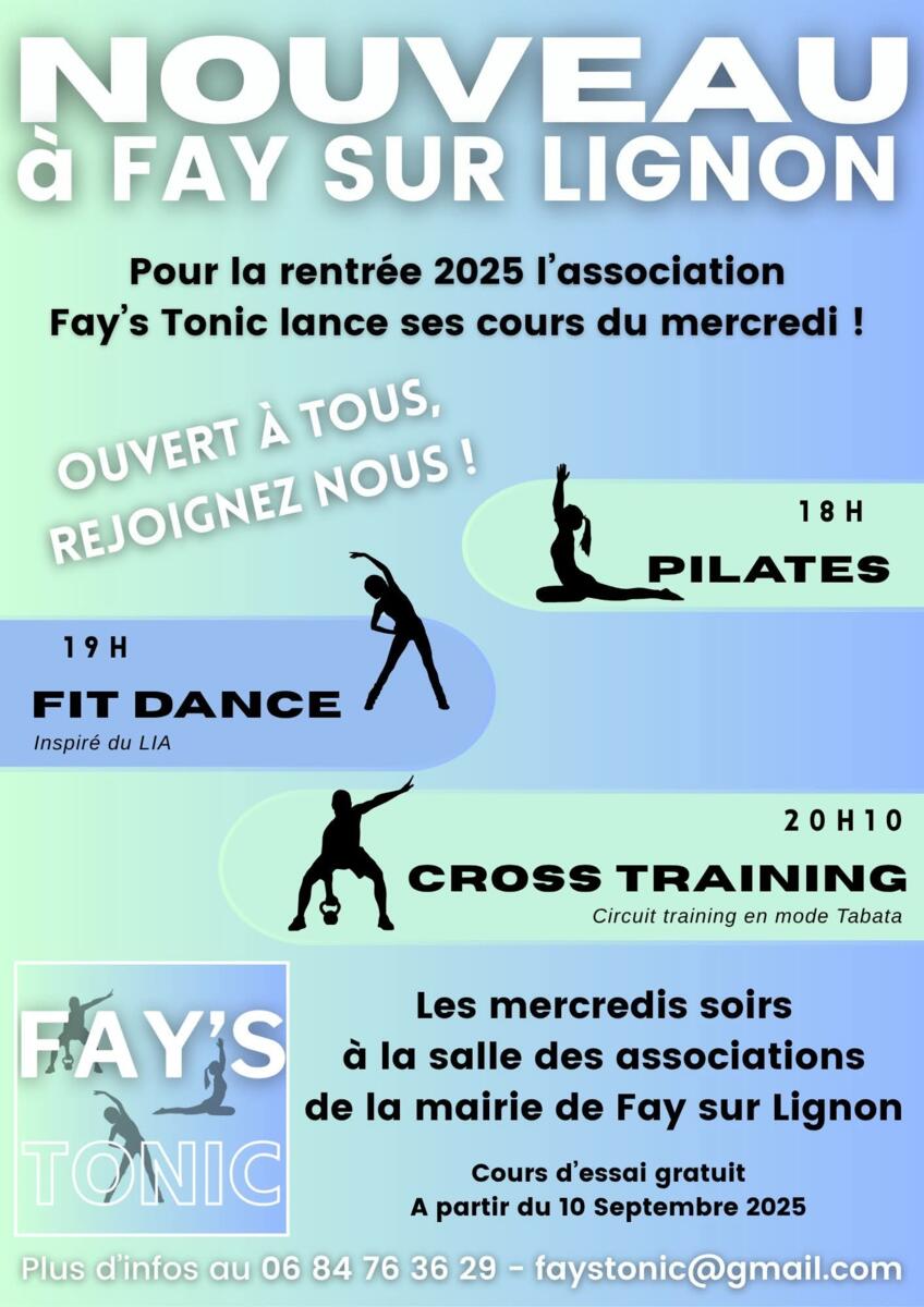 Des nouveaux activités sportifs 7/15/25 À la rentrée des nouveaux activities sportifs avec Fay's Tonic!! En plus des activités des mardis et jeudis habituelle
