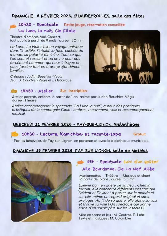 Des spectacles, des lectures et des ateliers à Chaudeyrolles, Les Estables, Fay-sur-Lignon, Saint-Front, Les Vastres