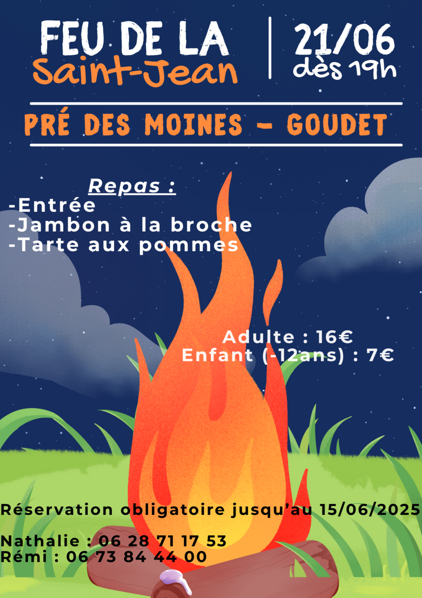 Les Amis de Goudet vous convient aux "Feux de la Saint-Jean" le samedi 21 juin au Pré des Moines à Goudet dès 19h00.