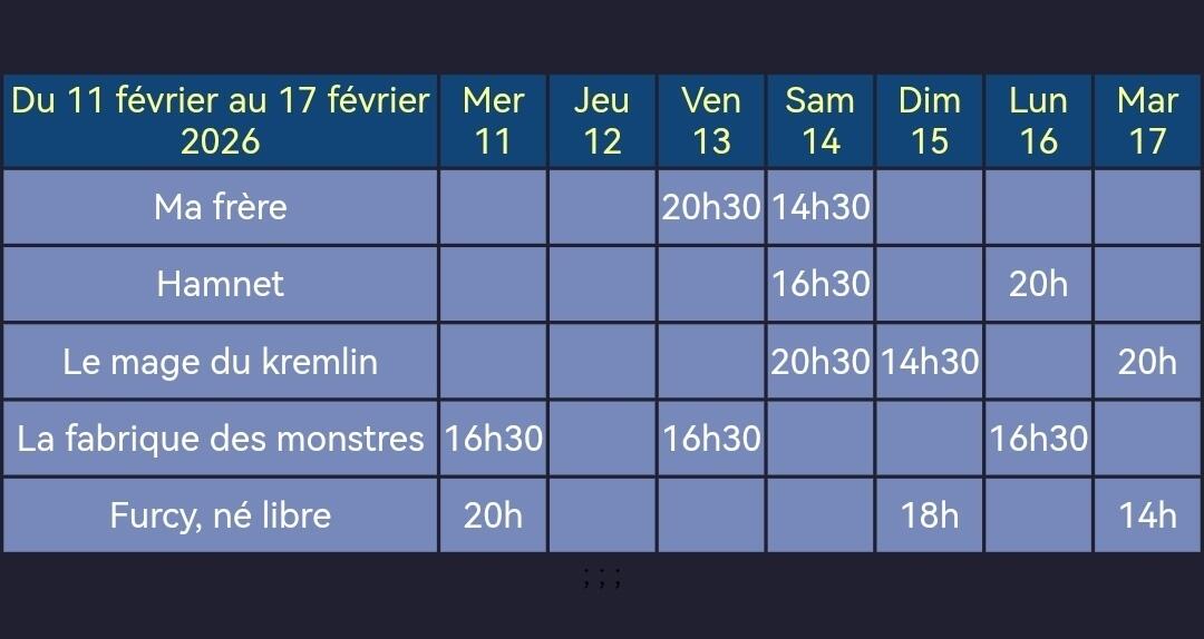 Programme AureCinéma du 11 au 17 février