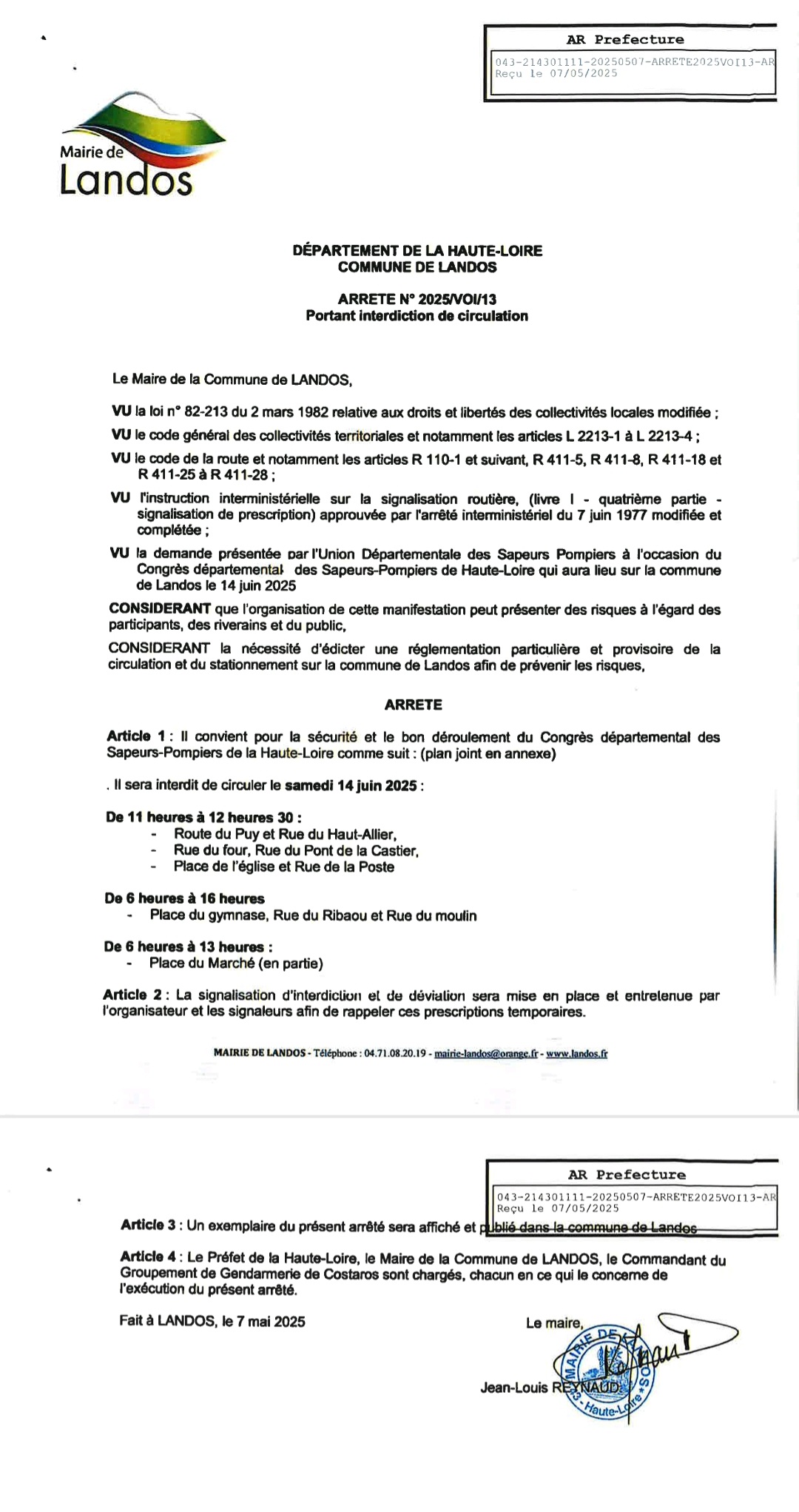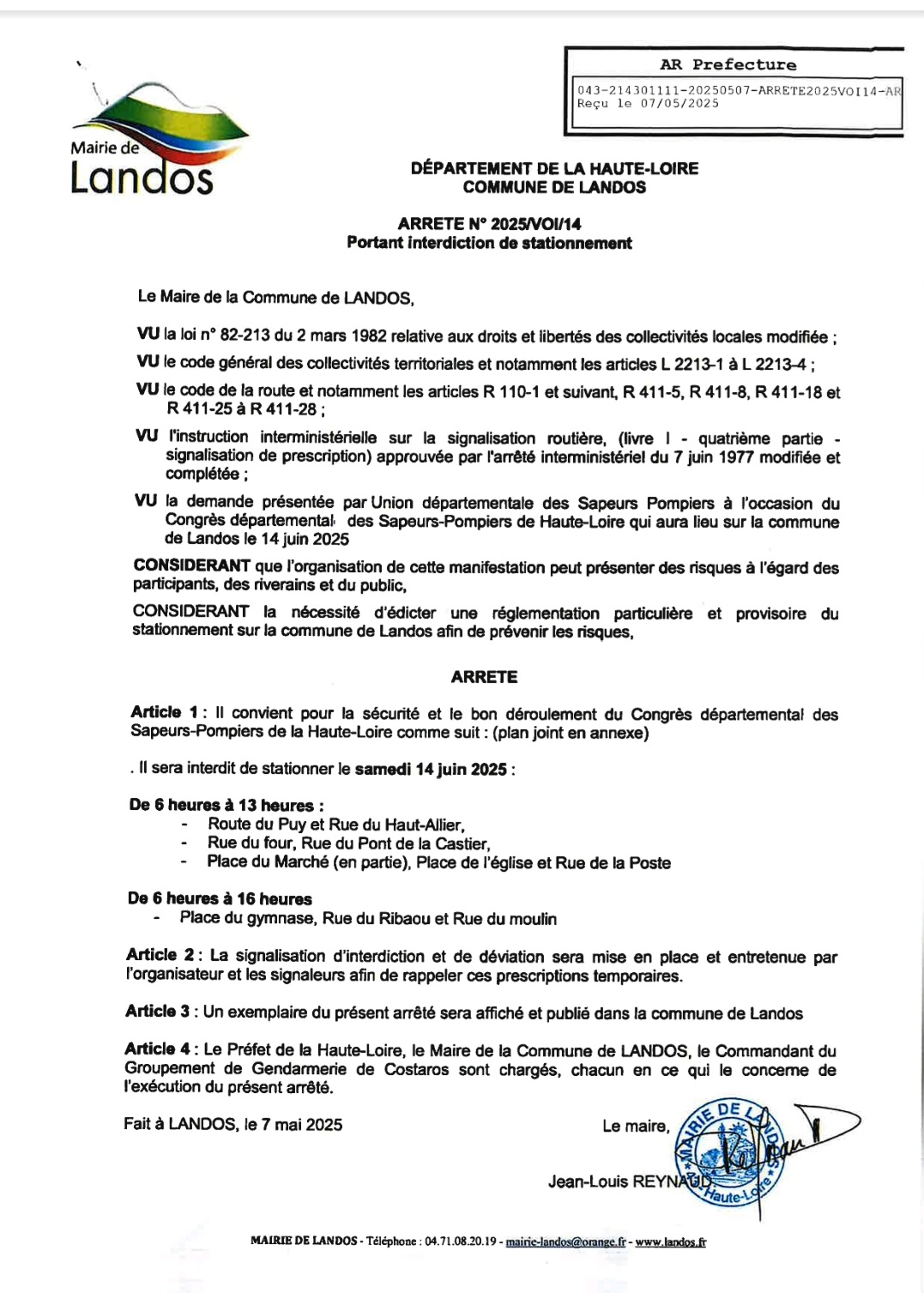 De nombreux congressistes seront présents et afin de les accueillir dans de bonnes conditions et de permettre le très beau défilé d'engins motorisés et des troupes, accompagnés par la musique militaire, un certain nombre d'arrêtés de circulation et de stationnement ont été pris sur le bourg.