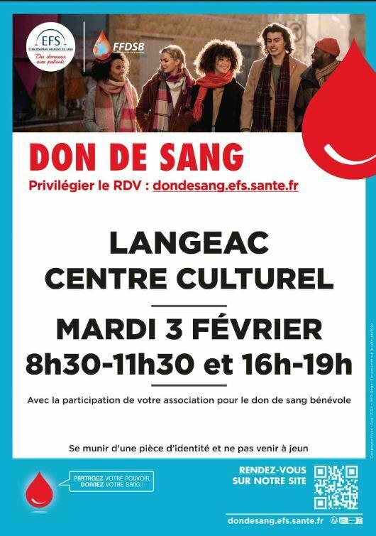 La prochaine collecte aura lieu Mardi 3 février de 8h30 à 11h30 et 16h à 19h, au Centre Culturel.