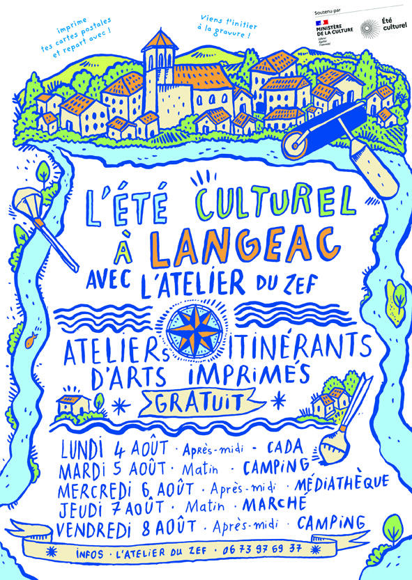 Dans le cadre de l'été culturel de la DRAC, les ateliers itinérants d'Arts imprimés de "l'Atelier du Zef" vous propose de vous initier à la gravure et à l'imprimerie.
