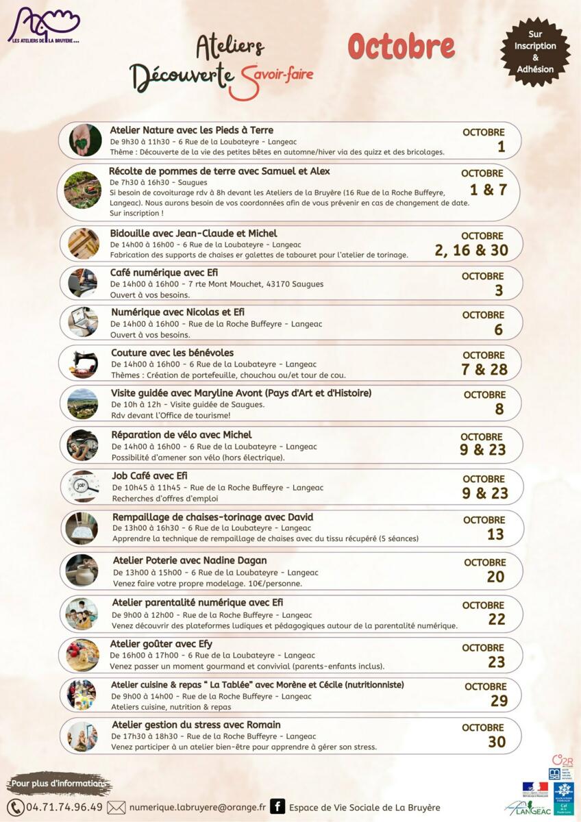 Voici le programme des Ateliers du Savoir -Faire des Ateliers de la Bruyère . A vos agendas !