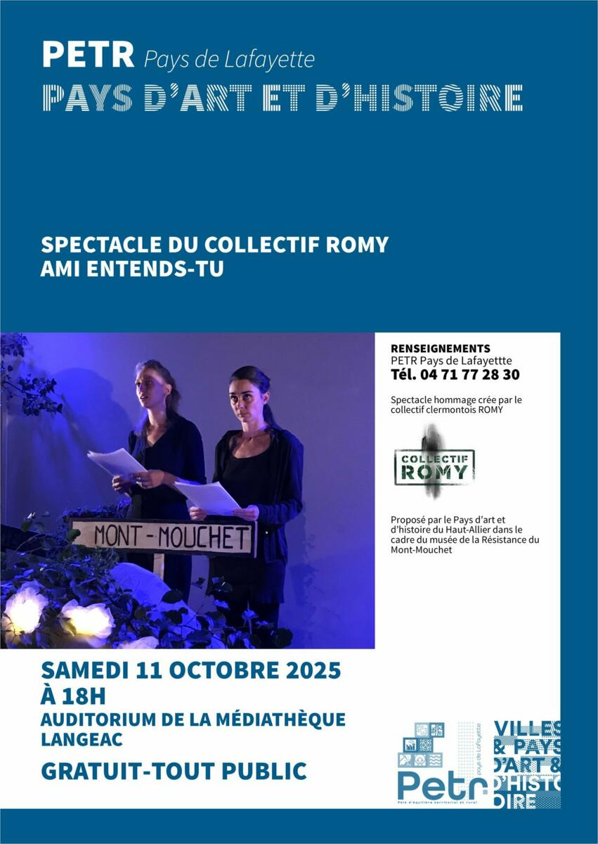 Spectacle du collectif Romy "Ami entends tu ", samedi 11 octobre à 18h, à la médiathèque.