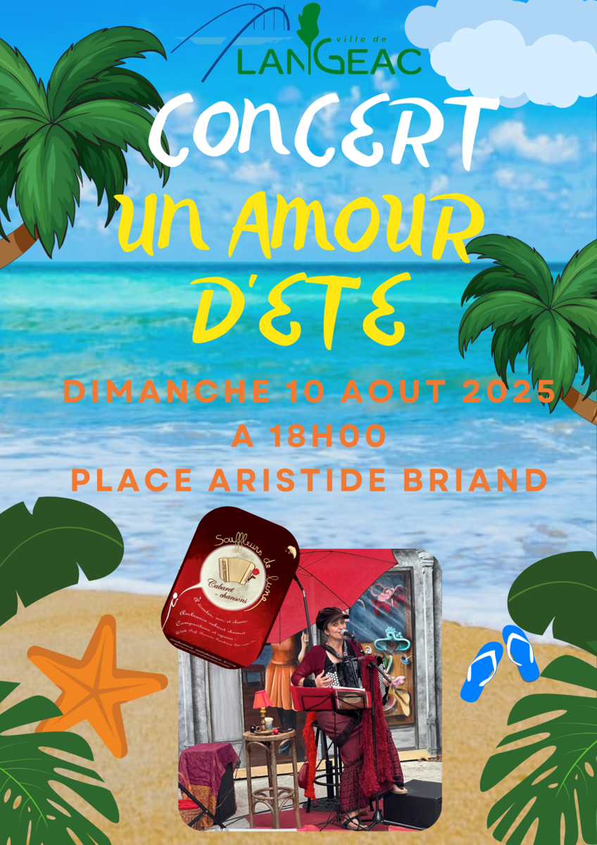 UN AMOUR D'ETE 8/4/25 Concert place Aristide Briand, dimanche 10 août, à 18h, avec le groupe "Souffleurs de lune". Concert gratuit et ouvert à tous !