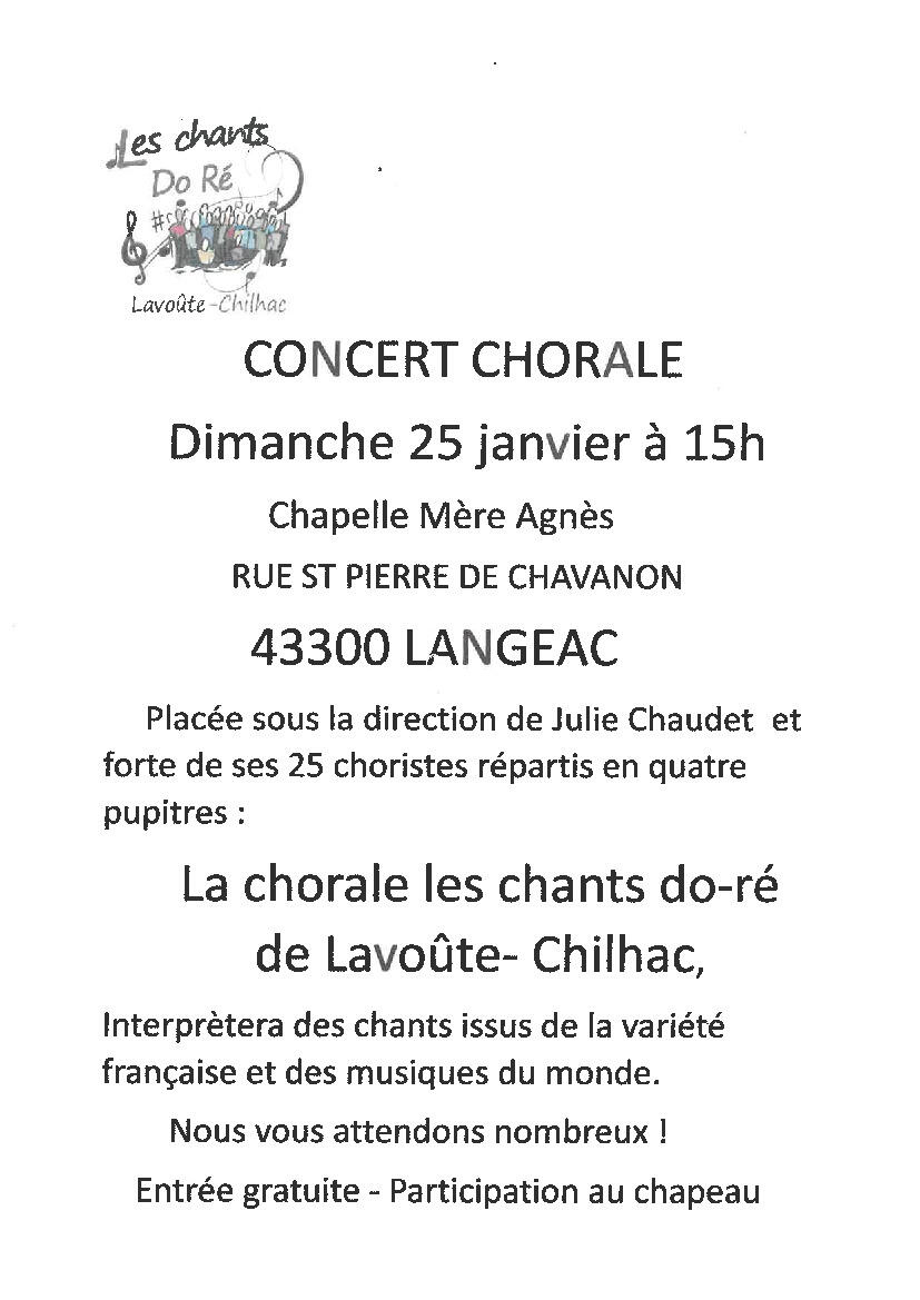 La Chorale Les Chants Do Ré donne un concert le dimanche 25 janvier 2025 à 15h dans la Chapelle Mère Agnès de Langeac.