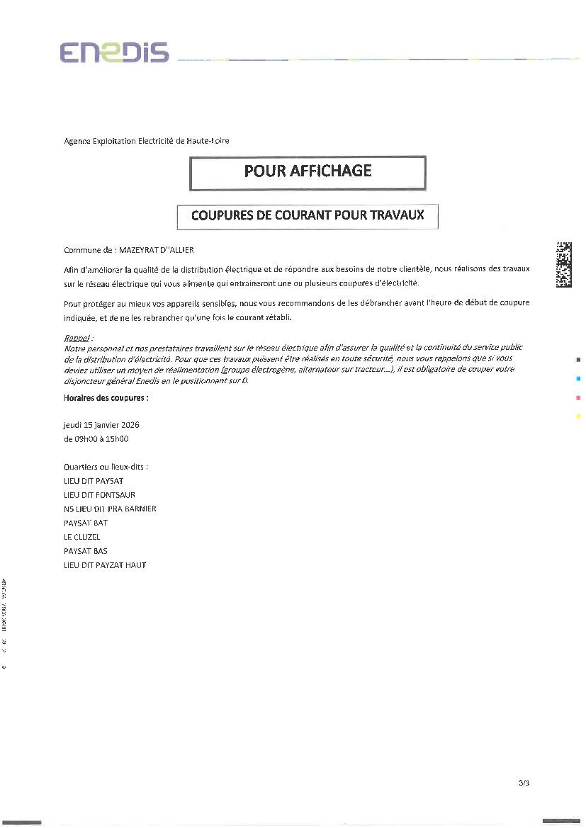 Coupure de courant pour travaux : 15/01/2026