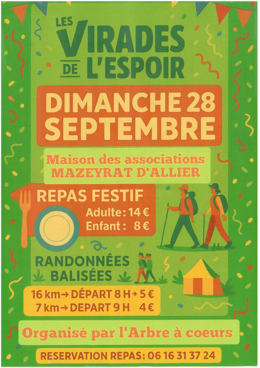 L'Arbre à Cœurs organise Les Virades de l'Espoir le Dimanche 28 septembre 2025 à la maison des Associations de Mazeyrat d'Allier.