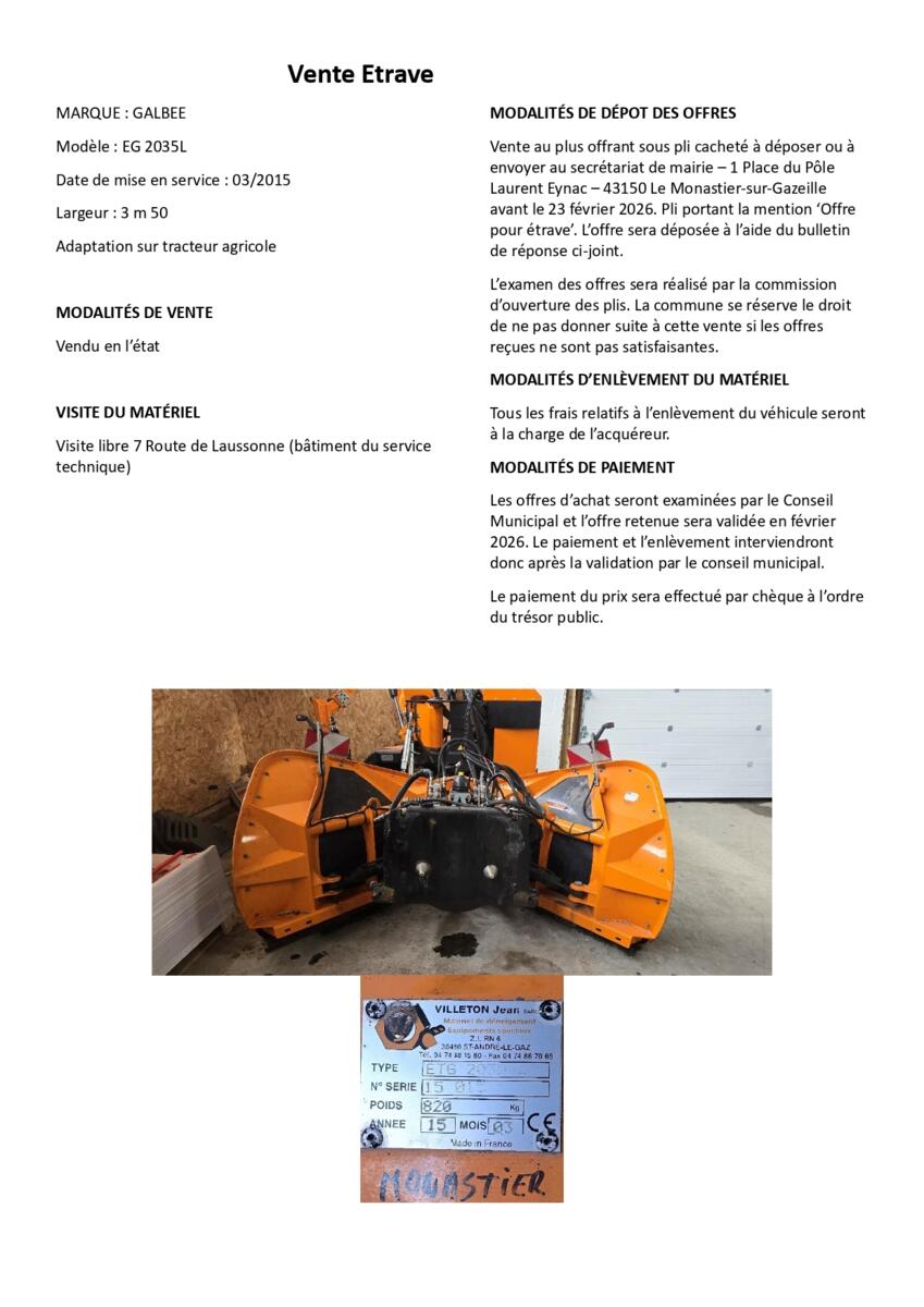 Vente matériel communal - Etrave et rampes de chargement