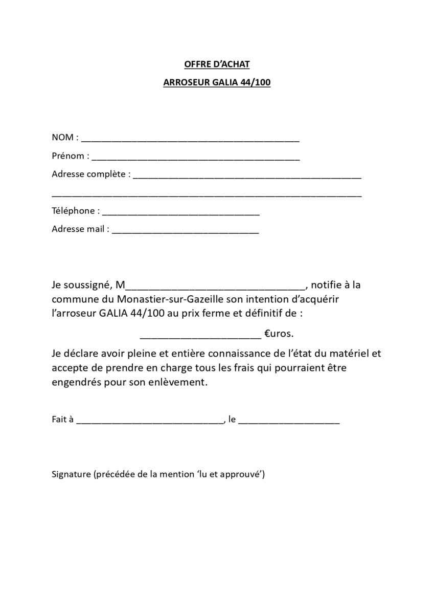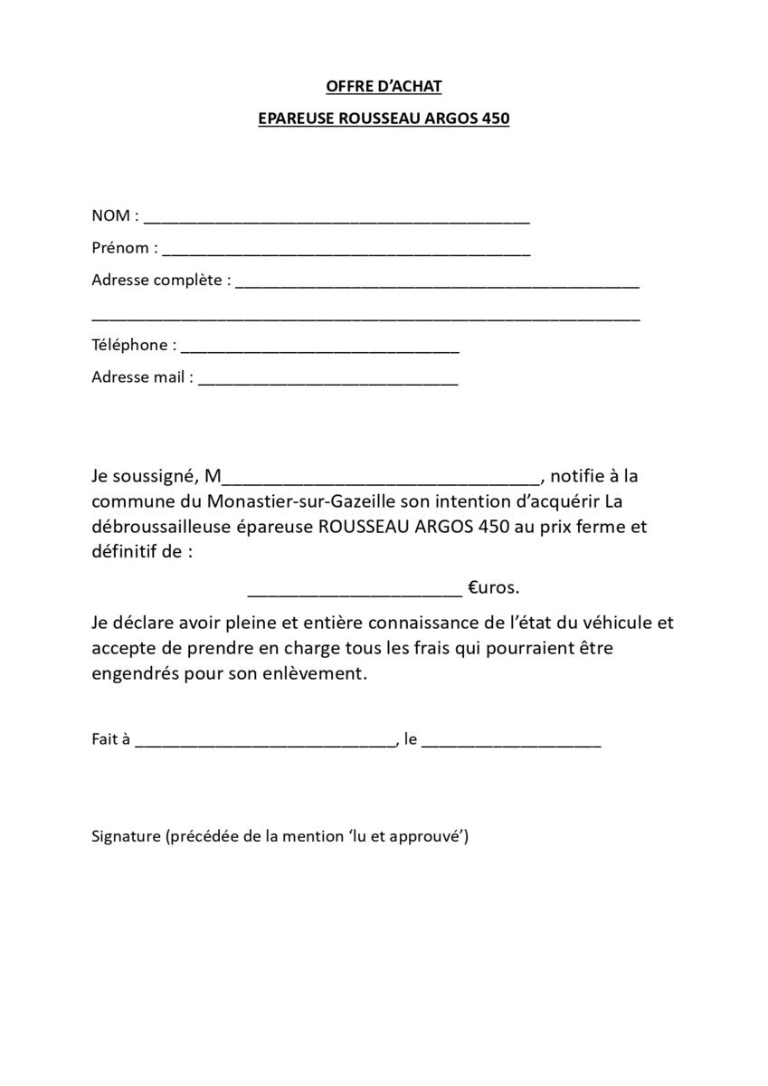 Tous les détails d'offre sur les annonces ci-jointes ou directement en Mairie - Offre d'achat à transmettre en Mairie le 31 Octobre 2025 au plus tard.