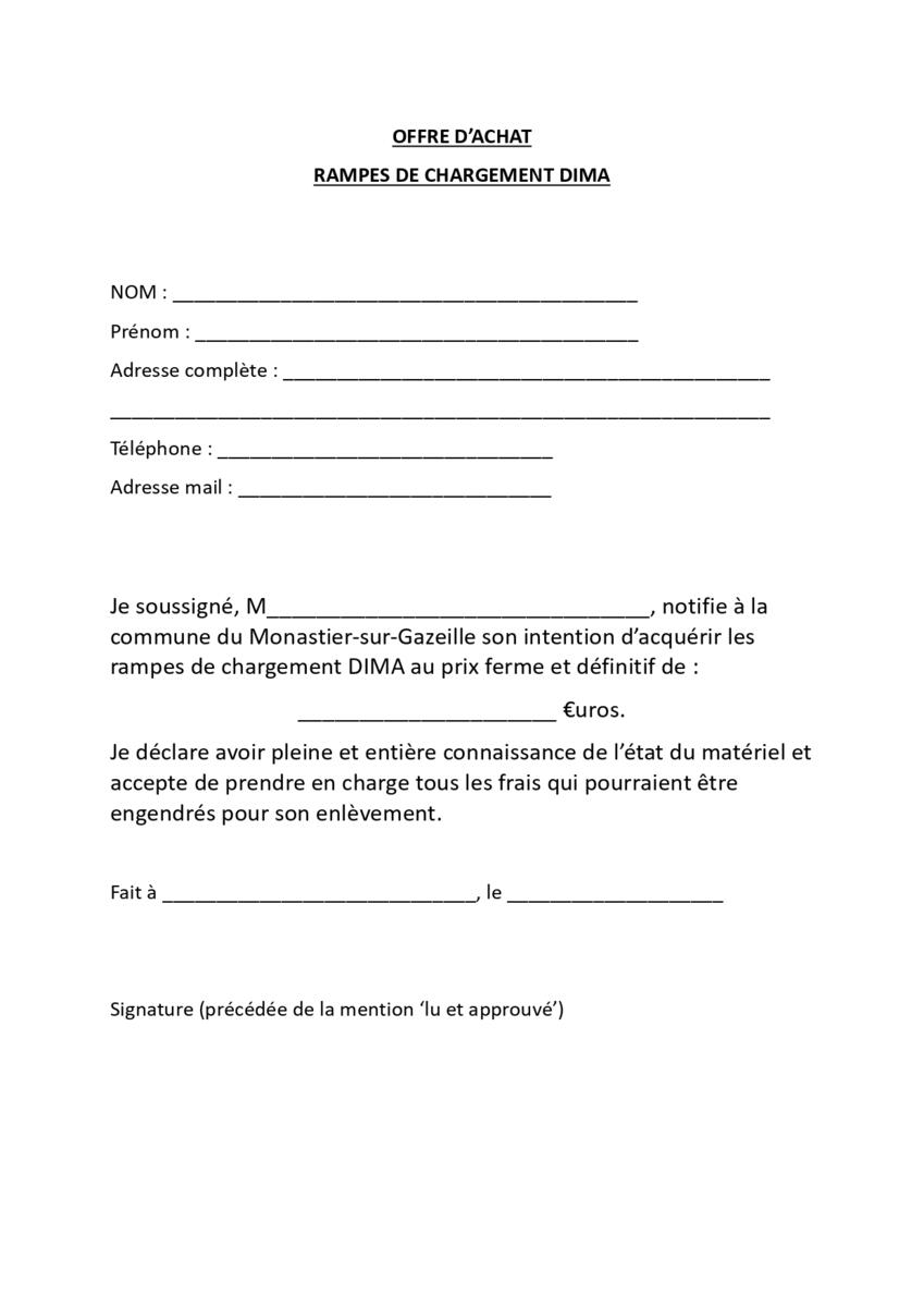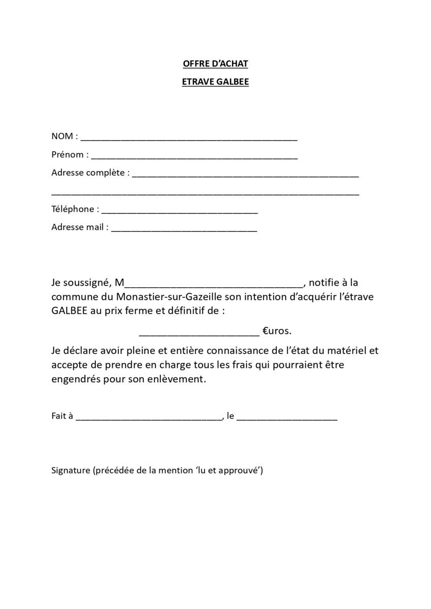 Formulaires d'offre d'achat à remplir et à retourner en Mairie avant le 23 Février 2026