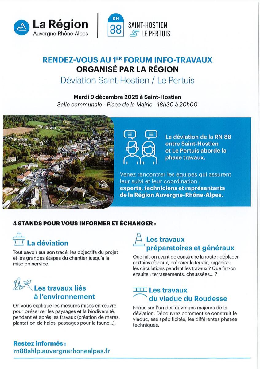 information forum info-travaux RN88 Mardi 9/12 à St Hostien