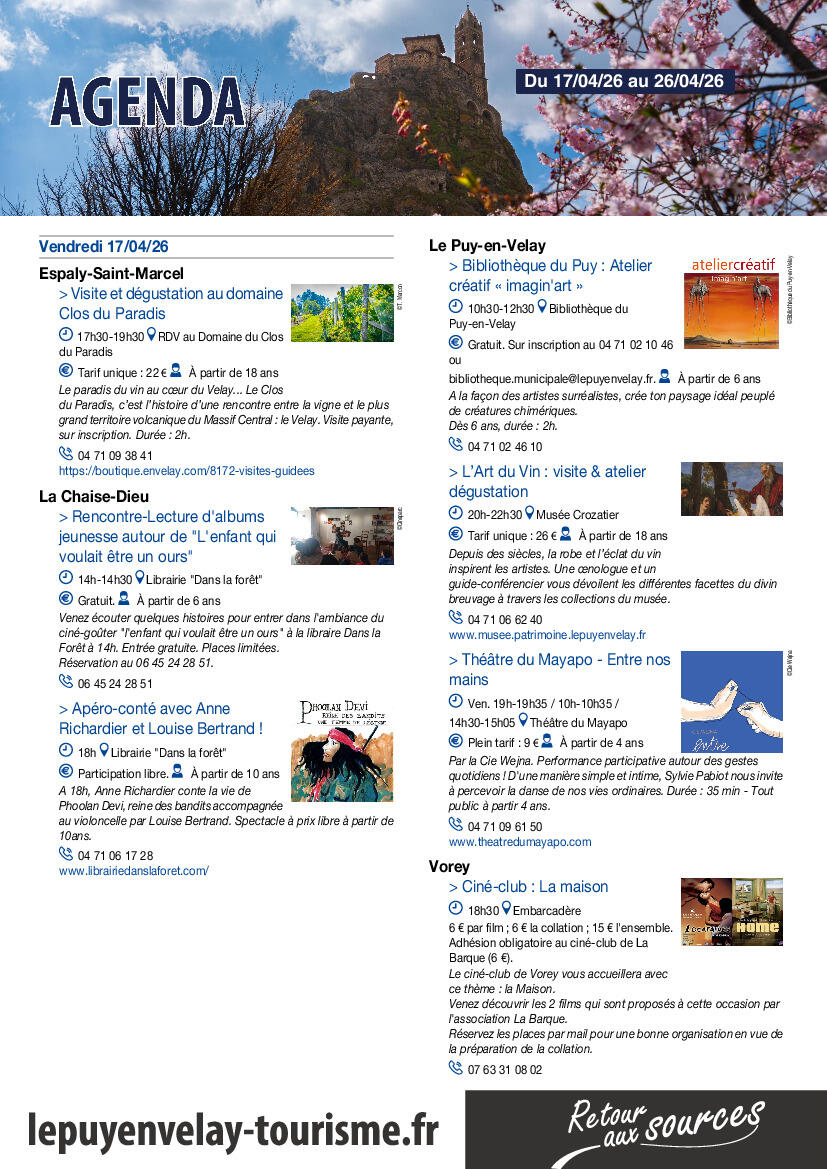 Veuillez trouvez ci-joint les animations que l'on nous a communiquées et qui se dérouleront sur le territoire de l'Agglomération du Puy-en-Velay ce week-end et la semaine prochaine.
