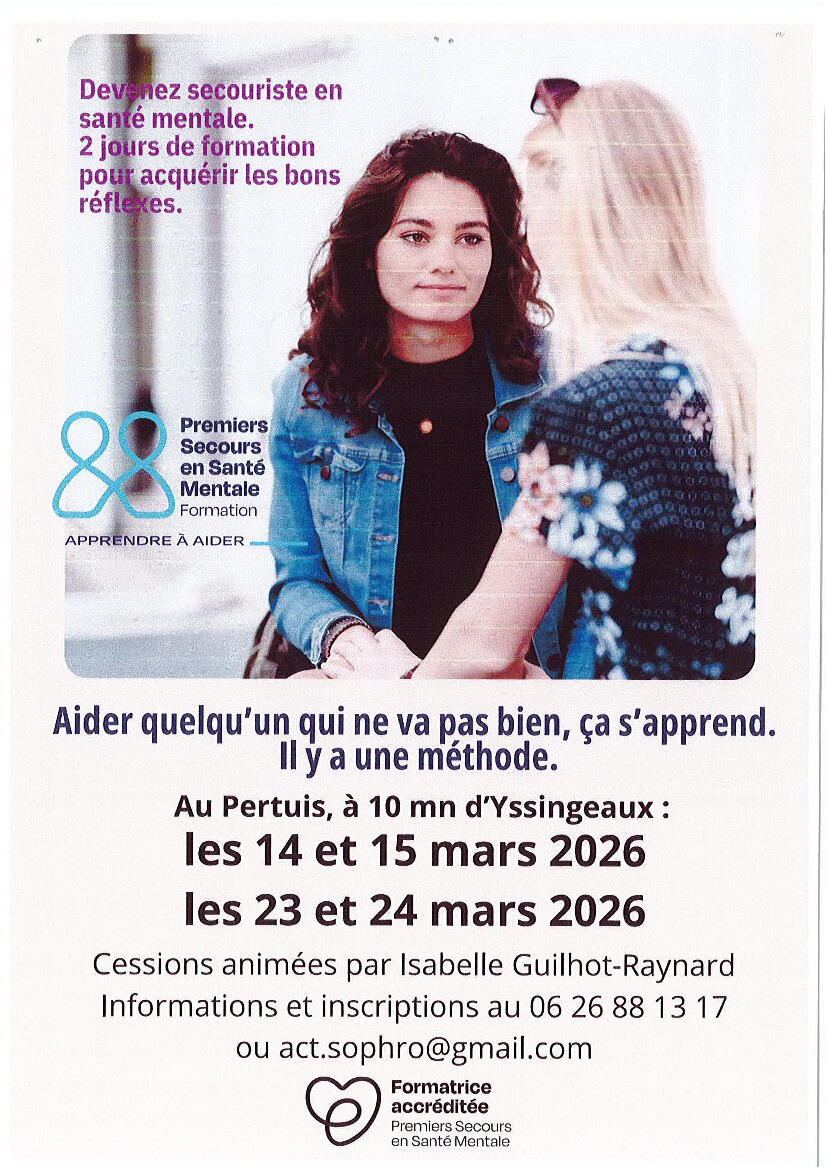 ACT'SOPHRO organise des sessions de formation PSSM la commune commune à en mars prochain 14/15 et 23/24